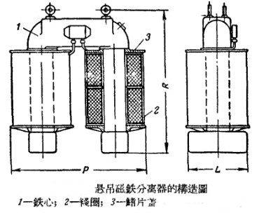 球qiu磨mo機ji運yun轉zhuan中zhong所suo用yong的de懸xuan吊diao磁ci鐵tie分fen離li器qi則ze主zhu要yao由you一yi些xie馬ma蹄ti形xing的de鐵tie心xin構gou成cheng,其qi上shang繞rao有you線xian圈quan,而er下xia段duan裝zhuang有you的de端duan部bu。經jing過guo此ci設she備bei分fen離li出chu來lai的de金jin屬shu塊kuai會hui在zai人ren工gong作zuo用yong除chu去qu,具ju體ti結jie構gou如ru下xia: